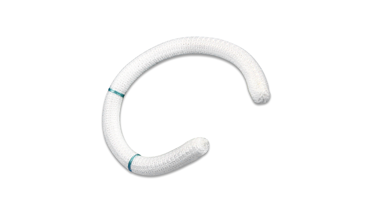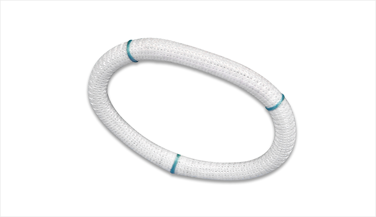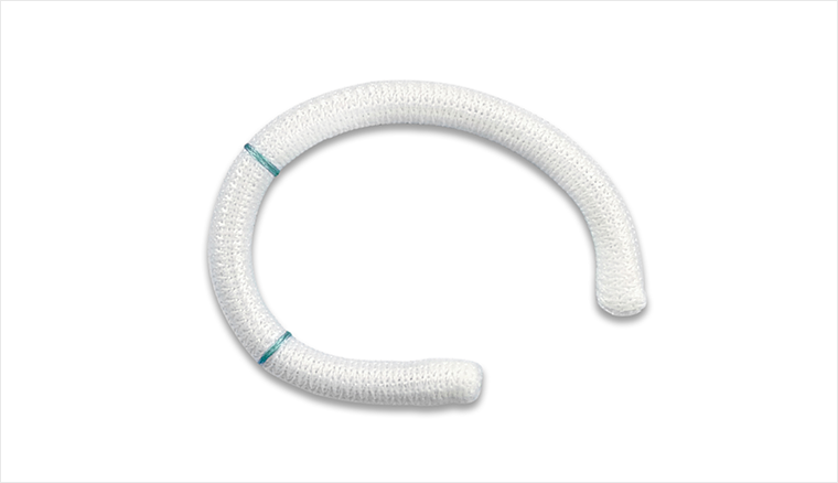 环体支撑管外部包被有一层质地柔软而富有弹性的医用聚酯编织物。这层编织物不仅保证了环体与瓣环组织有很好的贴附,同时具有很好的生物相容性。经动物实验证实,该人工瓣环被植入3周后即可被心内膜全部覆盖。